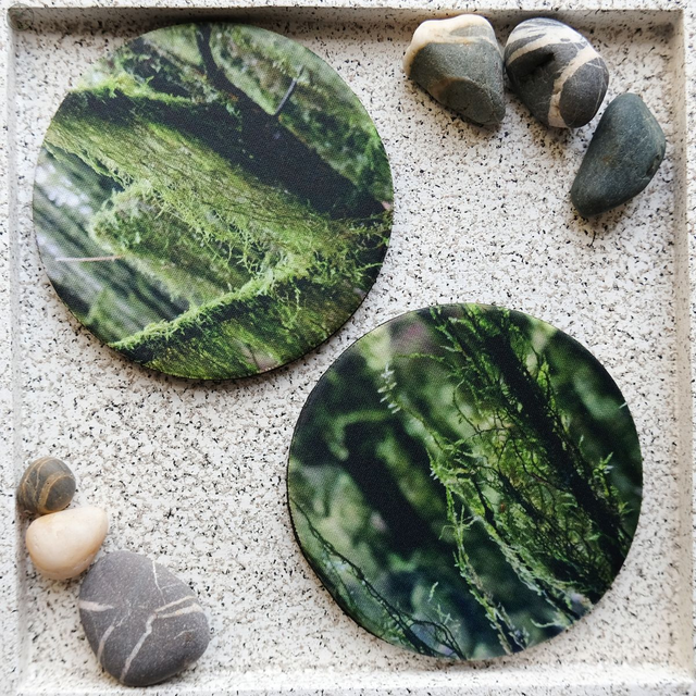 Sublimated rubber coaster set of 4, single sided image. Square sets 9cm x 9cm, round sets 10cm diameter