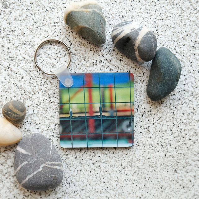 Sublimated wooden key ring, double sided same image both sides, between 5cm to 7cm diameter (3mm thick)