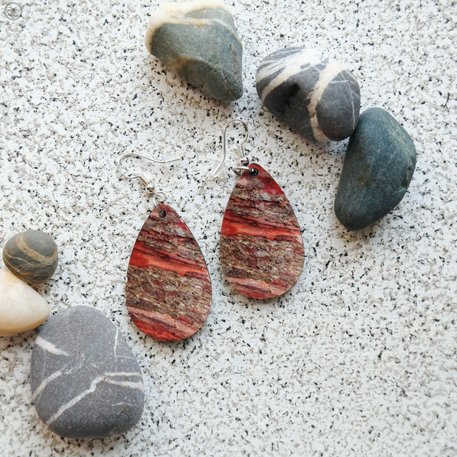 Sublimated wooden earrings, double sided same image both sides, stamped 925 silver hooks. Teardrop style 4cm long, Long style 5cm long (both 3mm thick)